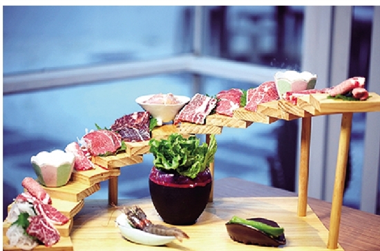 很多人知道,井作源于一道刷爆朋友圈的神仙阶梯烤肉!足足十五层“肉欲”,几乎囊括了整本菜单。和牛五花、和牛上脑、葱盐牛舌、横膈膜、牛肋条、三筋、牛小排、牛仔骨、牛肩肉、鸡腿肉、厄瓜多尔白虾,气场全开!如果就餐人数不多或者胃口不大,7层阶梯也能满足你的食肉欲,层层旋转台承载着不带重复的肉品,感受到烤肉的美味在你嘴里循序渐进地递增!