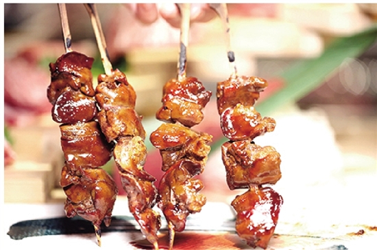 鸡肝一般用酱汁烤制,这样能锁住鸡肝内部的水分。经过小火慢慢烤制,酱汁包裹着粉嫩的鸡肝,口感醇香浓厚,细腻绵延。