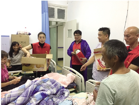 “我们温暖了他们,他们也感动了我们,这就是坚持的理由!”当晚,董温来就发烧了,但她仍坚持做完所有工作。她说,加入义工队已有5年时间,每年台风季,她都会跟队员们一起到各个避灾点送避灾物质,每次看到避灾人员开心地吃着他们送过去的食物,心里就特别暖。