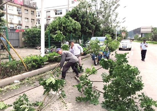 台风“利奇马”带来强风暴雨,给塘下村庄、道路、农田等带来一定的影响。8月10日清晨,塘下镇各办事处、村居迅速行动,积极采取各项措施,全力以赴开展巡查、清扫等工作,力争把台风造成的影响降到最低。
