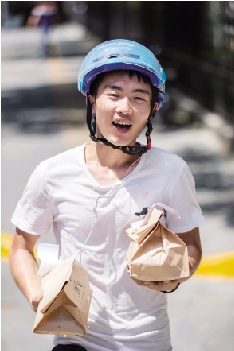 午餐时间,外卖小哥吴强拿着顾客点的外卖奔跑在大太阳底下。“中午有三四十单要派送,很忙很热,不过骑着电动车,还算有点风。”吴强说,派送时争分夺秒,没有时间管晒不晒、热不热的。
