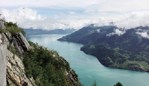 继续前行,发现行人越来越少,有的游客半途而返。殊不知,而世之奇伟、瑰怪,非常之观,常在于险远。随着栈道,喀纳斯湖面变化无穷。喀纳斯是高山湖泊,湖水来自冰山融水和当地雨水,又是中国最深的冰渍堰塞湖,湖水清纯;周边群山,轮廓有着几何美感,而且色彩丰富分明,山尖上是没有融化的雪峰,山腰是森然壁立而有层次的冷杉,天空又是蓝得彻底,飘浮几朵白云,倒映其中,湖水被调和得明净而侧艳。