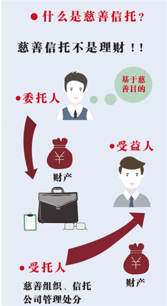 《慈善法》确定了慈善信托的概念,指“委托人基于慈善目的,依法将其财产委托给受托人,由受托人按照委托人意愿以受托人名义进行管理和处分,开展慈善活动的行为”。