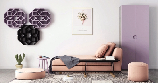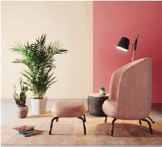 主题色的载体会随环境而变化,当空间够大的时候,主题色的载体是大家具,例如长沙发、床等。空间小的情况下,强调大件家具并不合适,主题色就会放在小家具上,如单人沙发、床头柜等,以此来弱化大家具的存在感。