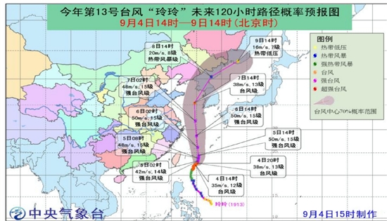 “玲玲”是香港提供的台风名字,听起来是个“软妹子”,但9月3日晚上,“玲玲”由强热带风暴级加强为台风级。昨日上午10时,市气象台发布台风蓝色预警。根据市气象台昨日17时发布的海上台风警报和天气预报显示,“玲玲”(台风级)16时中心位于我市东南方向约738公里的西北太平洋洋面上,就是北纬22.5度、东经125.1度,中心附近最大风力12级(35米/秒、126公里/小时),中心最低气压970百帕。预计“玲玲”将以每小时10公里左右的速度向偏北方向移动,将于5日进入我国东海,强度逐渐加强,最强可达强台风或超强台风(14至16级,42至52米/秒)。