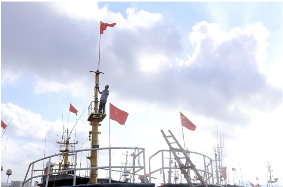 如今,渔民们的生活条件越来越好,谈起今后发展,阮臣弟毫不犹豫地说:“我要挂着国旗打一辈子鱼!”