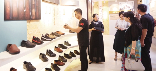 当地老人指着墙壁上一幅“修鞋刀”的展板介绍,过去手工制鞋,要制作一双精美的鞋子可没那么容易,不仅要严格明确每道工序,而且对尺寸、手法、力度都有很高的讲究,现在机器化生产、流水线作业,不仅生产效率提高了,质量也提高了。