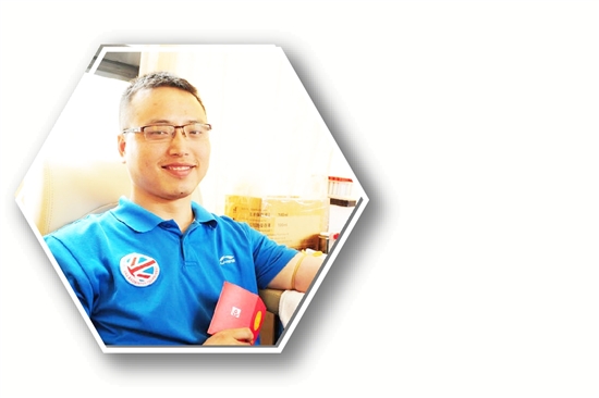 他是瑞安第一批无偿献血者、资深“献血达人”,连续坚持献血22年,累计献血量达33400毫升,比8个50公斤成年人总血量还多。他不仅献血,还定期捐献血小板。他说,献血使他健康、使他快乐,献血已成为他生活中不可或缺的一部分。他是瑞安第一个造血干细胞捐登记献志愿者,2005年5月14日,他加入中华骨髓库,2007年,其血型与河南一名年轻患者配对成功,他立即决定捐献造血干细胞,遗憾的是,在经历了初筛、高配等一系列化验后,患者没能等到手术就去世了。他促成瑞安市热血志愿者服务队、瑞安市红十字造血干细胞捐献志愿服务队成立并任队长,带领“热血”队伍,积极参与献血、开展造血干细胞捐献知识和无偿献血宣传等。曾获全国无偿献血奉献奖金奖、中华骨髓库“五星级志愿者”等荣誉。