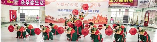 本报讯(记者 陈京子)日前,“巾帼心向党 喜迎七十年”2019年瑞安市健身排舞(广场舞)大赛在莘塍街道文体中心举行。