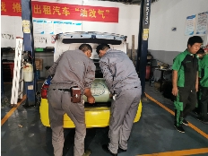 当天,位于瑞祥大道上的出租车“油改气”改装点开始作业。记者在现场看到,5个工位可同步改装,每辆车分别有4名技术娴熟的改装师傅进行有序改装,其中2名师傅在发动机处负责改装电控系统,改好后可以实现出租车油气全自动切换,另外2名师傅负责铺设高压管道,在后备箱加装储气瓶。