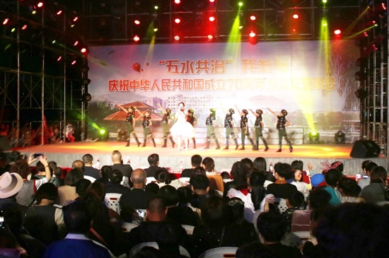 11月3日,“五水共治”大型文艺晚会在明镜公园举办。晚会以歌唱祖国为主题,舞蹈《中国万万岁》、大合唱《歌唱祖国》等30多个文艺节目轮番上演,大力宣扬“五水共治”、人水和谐、生态环保等理念。 (记者 庄颖昶)