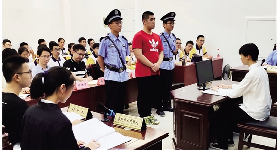 在当天的活动中,学生以情景剧与模拟法庭相结合的形式,再现庭审现场。法庭庄严肃穆,各标牌、物证等道具一应俱全,参演学生身着标准制服,融入场景氛围,准确把握各自的角色:“审判长”“审判员”认真审理,“公诉人”指控义正词严,“辩护人”巧舌如簧,最后“被告人”认罪悔罪。