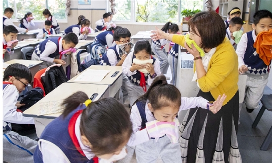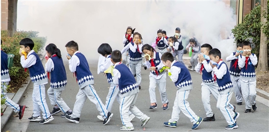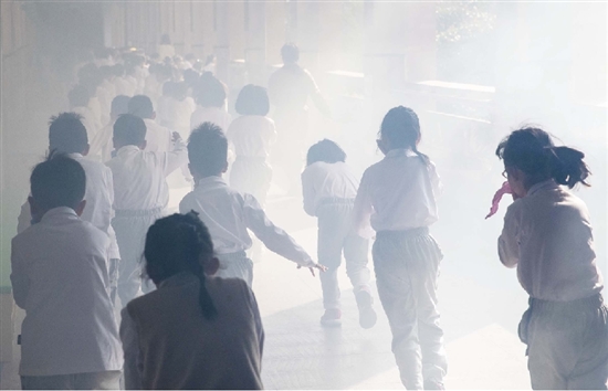 随后,学校的师生开始了应急疏散。各班级指挥疏散的老师提前就位,在阵阵浓烟中,指导学生在逃生过程中捂住口鼻,弯腰有序地按照指定楼道疏散。整个疏散过程做到了快、静、齐,没有学生滞留在教学楼区域,在短短的3分钟内全部到达学校操场。