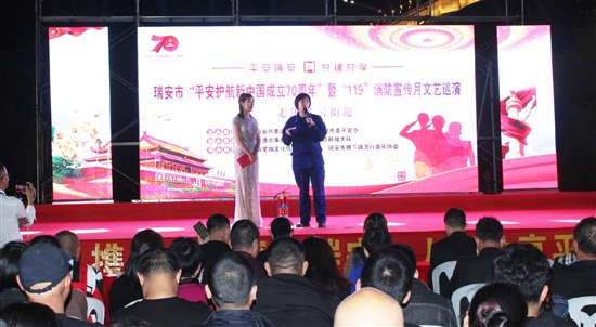 “电动自行车停在疏散通道、安全出口、楼梯间、室内等地违规充电极易引起火灾,又严重影响疏散逃生,且起火后浓烟可在3分钟温度可达1000℃,可导致一整幢四层建筑充满有毒浓烟……”11月6日晚,我市“平安护航新中国成立70周年”暨“119”消防宣传月文艺巡演活动走进飞云街道,在这里,不仅有精彩的节目,还为广大的观众带去消防安全知识,现场播放的“影响消防安全的日常十大不良行为”就是内容之一。