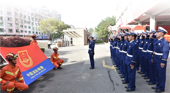“我志愿加入国家消防救援队伍,对党忠诚,纪律严明,赴汤蹈火,竭诚为民……”日前,在市消防局的大院里,传来了一阵激昂的声音,消防员们在这里开展了重温消防救援队伍誓词活动。活动中,全体指战员精神抖擞、意气风发,高举右拳,面向中国消防救援队旗庄严宣誓。