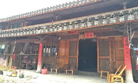 有次在老家,还特地进去到里面打量一番。女主人一边引导我一个一个房间参观,一边很是热情地向我介绍着翻修的情况。一楼重新铺上地砖和木地板,每个房间的顶上也全部贴上了复合板,房梁上的标语和板壁上的“毛主席语录”还在;二楼也恢复了原状,原先的各个小房间拆了,前面的走廊开通了。估计除了原来房屋的木头架构,其他都换新的了,原来的大门板改做茶台。