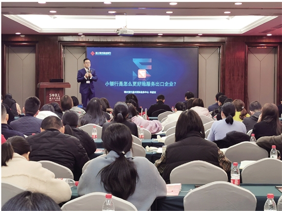 柯益发首先以“小银行是怎么更好地服务出口企业?”为主题发表演讲,随后介绍了该行“智汇通、智兑通、智融通、个贸通、电赢通”等本外币产品,以及该行跨境电商业务、产品优势和鹿城市场采购的贸易模式。会上市商务局相关负责人汇报了今年外经贸情况。