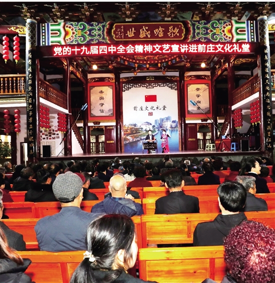 本报讯(记者 陈异俗 通讯员 吴张瑞 董盈盈/文 特约记者 徐洪娒/图)日前,党的十九届四中全会精神文艺宣讲活动走进塘下镇前庄文化礼堂,表演者用本地方言,以鼓词、快板、小品等方式,向群众宣传党的十九届四中全会精神,让党的创新理论“飞入寻常百姓家”。