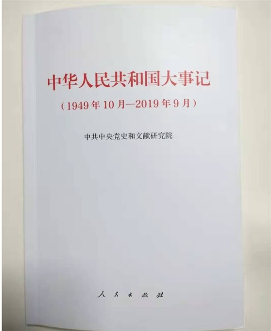 在我生日的前日,我终于从新华书店购到由人民出版社出版的《中华人民共和国大事记(1949年10月—2019年9月)》。我在该书扉页上题道:“今年九月,母亲便询问有此书否。九月末,母亲由《人民日报》读到刊发之全文,并作笔划提示。后来又多次向新华书店询问此书之出版,并预订八册,欲分赠后辈各户以学。我为此曾撰文《期待一本书》以记之。今天,我途经书店顺便一打听,购得此书。明日乃我生日,以此书奉慈母,权作母难日之礼。”在我的童年与青年时代,母亲给我买了许多书,让我读书获智。在我生日这一天,将母亲时常惦记、念叨的这本记录新中国重大事件的书,作为母难日的礼物赠与母亲,也是非常有意义的,就是牢记慈恩不易。