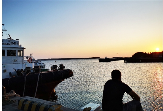 因为是岛上生活,车、马、邮件都慢。靠海吃海,这里的人,在清晨或黄昏,或三五成群,或孑然一身,坐在码头岸边,披一身朝晖夕阴,静静地消磨着时间。我上去问鱼获几何,通常微笑着摇头说没有。许是凑巧吧,问了几次,都说没有。