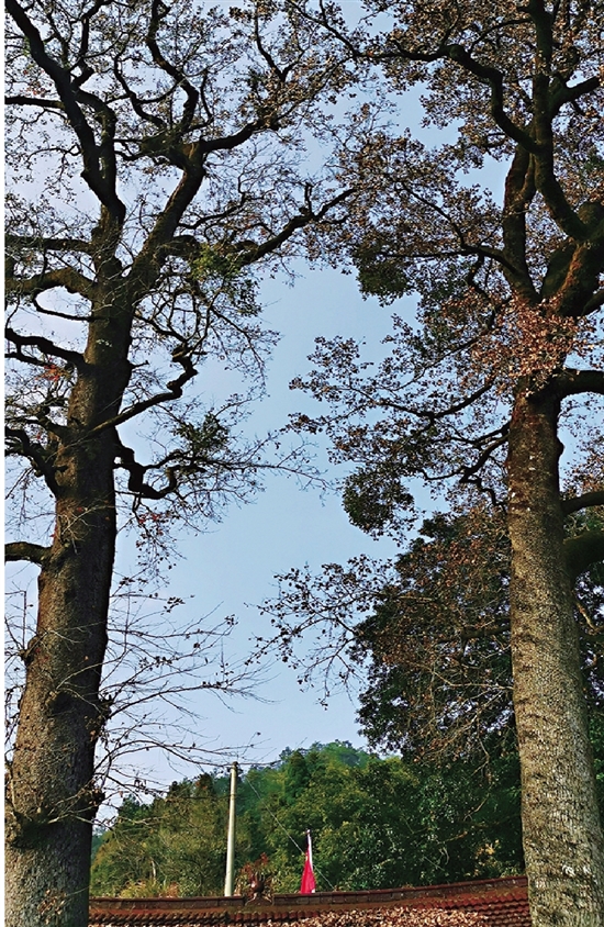 村中景致依旧,即便还未曾装饰,却也别有一番滋味,尤其矗立崖边的两株枫香树,虽然介绍牌上写着历史175年,不过据当地人讲,畲族村民迁居此地已有300余年,彼时,两株枫香便已亭立,肯定不止这些年岁。