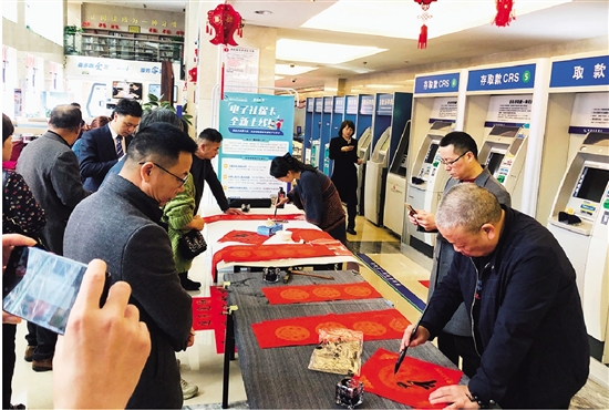 一行行俊逸的书法,一句句祝福的话语,给即将到来的新春佳节更添几分欢乐。这次现场书写送对联活动让客户品味传统文化的同时,拉近了与客户的距离,提升了客户对该行服务的满意度。