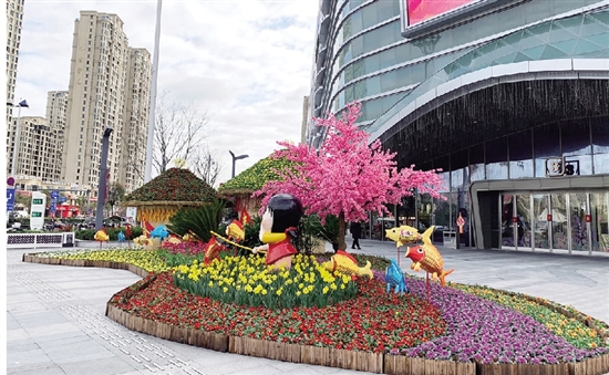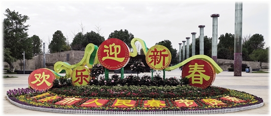瑞祥新区市政广场上,工人们正忙着摆弄鲜花造型,为公园增加节日的喜庆氛围;吾悦广场前的“大丰收”主题鲜花造型喜庆又富有寓意,引得不少市民拍照留念;市民黄先生在塘河北路晨练,看着沿途行道树上挂满的红灯笼,他不禁感慨“年味儿越来越浓了……”春节要来临了,市综合行政执法局绿化养护管理中心和公园管理中心近来在市区主要道路节点、各大公园精心布置6个点9处景观小品,为瑞城开启“美颜”模式,营造喜庆氛围迎接新春。