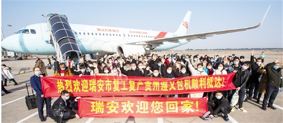 为助力复工复产,市人社局创新实施“双线”招工模式。线下,派出23个赴外招工专班前往7省百余县市,累计统筹1班专机、2趟专列、1287辆专车,累计接回新老员工61523人,并与29个劳务输出地签订劳务协作协议;近期,贵州关岭自治县、云南大理白族自治州等地相继来我市洽谈劳务协作事宜,为我市产业工人定向输送提供有力保障。线上,累计举办16场云聘会,服务5749家企业,提供5.36万个岗位,达成就业意向2.82万。