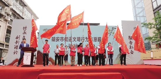 有事问问红马甲。去年,瑞安街头的“红马甲”成为一道流动的风景线。我市通过推进文明交通、文明排队、文明餐桌等“六个文明”主题实践活动,开展“文明礼让 为爱而行”活动,组织文明单位、机关党组织、社区组织、志愿组织、驾驶培训学校和主要交通路口“五个一”结对开展志愿活动,全年约开展2000余人次文明志愿劝导。