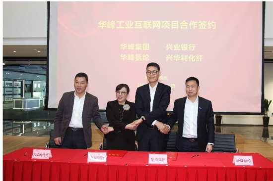 本报讯(记者 潘敏洁 通讯员 林加浩)近日,华峰工业互联网项目合作签约会在杭州举行。现场,祥业化工、金傲鞋业、卓腾贸易、双荣化纤、岩丰纺织、兴华利化纤6家企业代表分别与华峰集团、华峰氨纶、兴业银行进行四方合作签约。