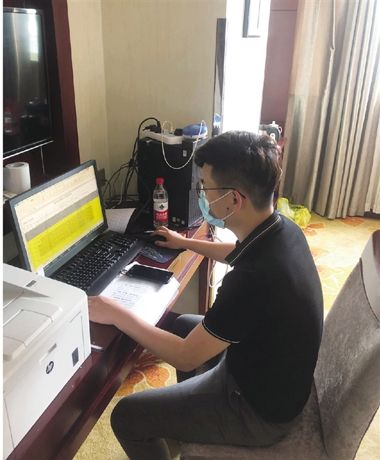 在某大酒店综合服务点,谢志坚担任联络员一职,负责与高速路口、动车站、机场等各个重要交通卡口以及乡镇(街道)保持密切联络,及时对接、核对重点人员相关信息,外防输入,确保疫情防控不留死角。“我所在的综合服务点平均每天需接待三四十人。”谢志坚介绍,综合服务点主要为重点地区人员提供核酸和血清采样、核酸检验报告及留置住宿等服务,相比之前的防疫工作,综合服务点的工作更繁琐,量更大,要有效把握政策的动态变化,更需要打起十二分精神。