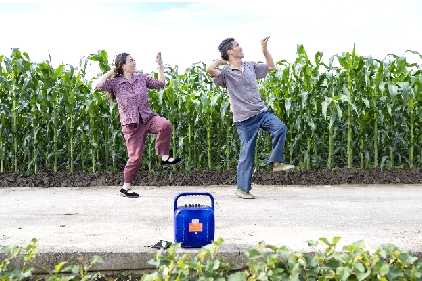 本报讯(记者 林翔翔/文 孙凛/图)6月2日14时许,在玉米地刚施完肥,彭小英看到丈夫范得多满头大汗,为他拭去脸颊的汗水。随后,她从三轮卡上拿出带轮音响并打开手机蓝牙,夫妻俩在音乐《渴望》的伴奏中跳起自编的曳步舞。