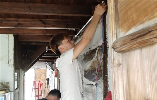 6月10日上午,电工来到上村社区一老旧民房,更换老化电线、插座、灯头、开关等。房东表示,房子建成有些年头了,家用电器越来越多,电线交织,并且裸露在外,使用存在危险,现在电线改造完成,不但美观而且安全。