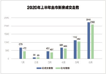 回顾上半年,受疫情影响,2月份全市仅成交91套新房,新房市场出现短暂停摆,一季度成交量明显下降。进入二季度,楼市开始复苏,众多新盘相继领出预售证,随着供应量的激增,新房成交量也出现大幅上升,5月份突破千套,6月再接再厉突破了两千套大关。
