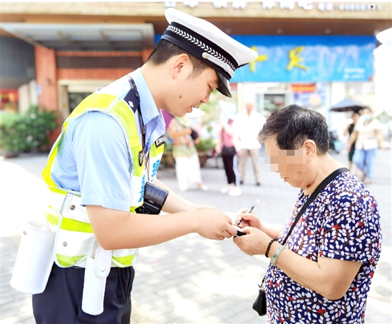 “天气热得我脑子都糊涂了,红灯也只管走。谢谢你们的教育,这是为我好。”昨日上午,市区虹桥南路沿江东路路口,一位上了年纪的大妈对交警玉海中队民警说。因为在斑马线上闯了红灯,她被执勤民警处罚5元。