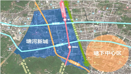 之所以在现阶段提出“塘河新城”的概念,还得益于该板块“独一无二”的交通优势。