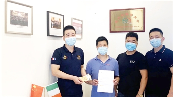 本报讯(记者 黄丽云)日前,意大利瑞籍侨胞何先生顺利登上了回国的飞机,回家治疗。特殊时期,这张珍贵的归国机票来自于意大利瑞安商会和意大利蓝天旅行社的联合援手。