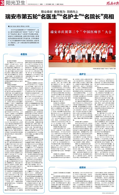 瑞安市第五轮“名医生”“名护士”“名院长”亮相