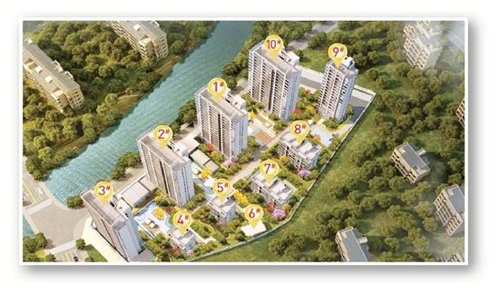 小区规划:由11栋高层住宅、4栋叠墅、一个幼儿园组成,涵盖住宅、写字楼及沿街商业