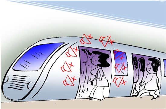 京沪高铁、成渝高铁的部分车次试点“静音车厢”服务。据铁路部门介绍,“静音车厢”将推多项静音服务,包括关闭列车上娱乐设施的声音、提供服务指南、全程服务无打扰等。而对于屡次劝阻无效的不静音行为,有可能被纳入铁路旅客运输领域信用管理。 (蒋燕南 画)