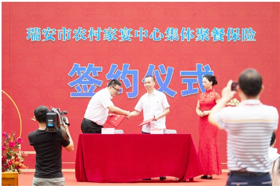 为贯彻落实为民办实事项目,有效防控农村集体聚餐食品安全风险,2019年,我市率温州各县(市、区)之先推出农村家宴中心集体聚餐保险,实现农村家宴食品安全保险全覆盖,为在农村家宴中心举行并向当地食品安全部门报备的集体聚餐提供保险,最高保险保障为500万元。2020年,保额从500万元提高到1000万元,给广大村民在家宴中心吃“放心宴”提高保险。