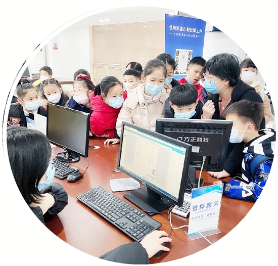 二楼是查阅大厅,在这里可以查阅到在档案馆储存的各种档案。了解了查阅大厅的功能后,同学们迫不及待地想查一查自己的档案,有的同学查了自己的出生证明,有的同学查了爸爸妈妈的学校,查阅窗口被小记者们围得水泄不通。还有的同学刚刚考完期末考,竟然想查自己的期末成绩,这一天真的举动,逗得大家哈哈大笑。