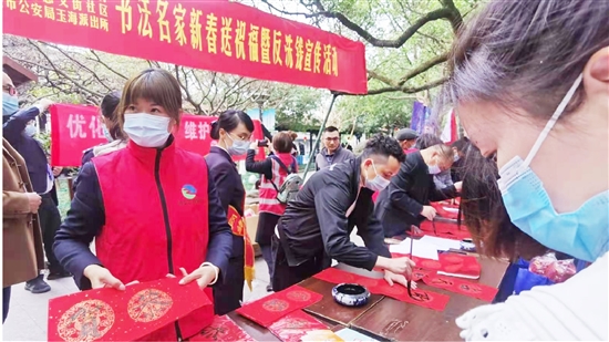 此次活动分别在瑞安农商银行仙降支行、湖岭支行、玉海支行、南滨支行举行,以开展讲座、悬挂宣传横幅以及海报、发放传单折页等方式宣传反诈、反洗钱相关知识。各活动现场吸引了很多市民、新居民围观了解;现场还邀请了市书法家协会会员林元况等多位书法家挥毫泼墨、奋笔疾书,“平安祥和”“家和万事兴”等新春祝福跃然纸上。