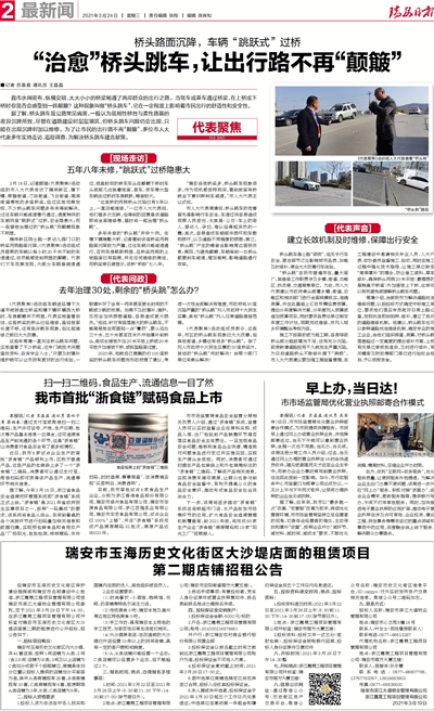 “瑞安各地桥梁多,桥头跳车现象很多,作为司机感受特别深,看到前面有桥就会下意识踩刹车减速。”市人大代表王让式说。
