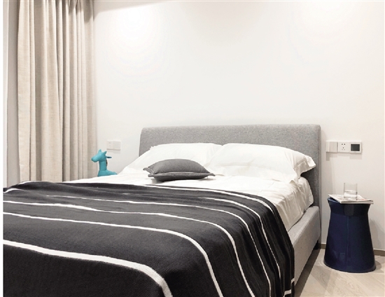 在取舍方面,年轻业主十分懂得自己的需求。客厅、餐厅对遮光效果要求不高,便采用了干净利索的百叶窗。沙发、茶几、桌子、床等家具,追求简约舒适和实用性,整个软装搭配仅花了5万多元,性价比较高。