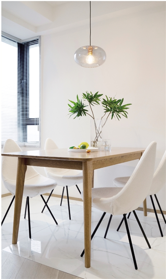 先来看硬装,因为采用日式极简风,所有墙面用的都是白色乳胶漆,油漆费用的大大节省,得以满足女业主一眼看中的“高价地板”。设计师介绍,除了餐厅、厨房用了瓷砖,铺满整屋的人字拼实木地板,总共花费约5万元,“虽然贵了些,但是为了提升整屋的气质,该花的钱也得花”。