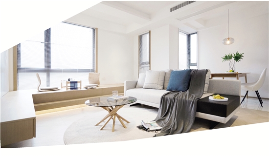 根据女业主提出的“要一个靠窗的休闲区空间”需求,设计师打通客厅,在窗边设计一个连通电视机柜的地台,并在地台内嵌入抽屉,提高收纳空间。