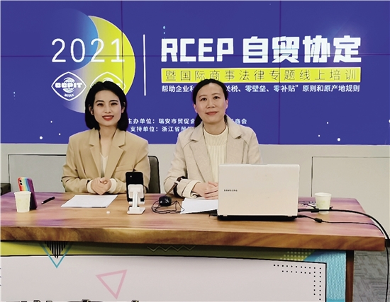 日前,RCEP自贸协定暨国际商事法律专题线上培训以直播的方式在瑞安日报5楼瑞安淘MCN开播,2个多小时的直播吸引了6万多人次的观看。据悉,此次直播是市贸促会(国际商会)一次“数字化”赋能发展的实践,也是全省贸促会系统开展的首场直播培训。