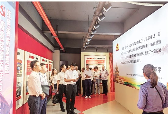 一行人首先来到市市场监督管理局观摩“党建引领·红盾闪耀”文化长廊,在讲解员的带领下,参观了光辉历程、廉洁自律、红色领航、先锋模范四个主题板块和非公党建展示厅。