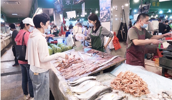 鱿鱼70元/公斤、目鱼70元/公斤、鲈鱼50元/公斤……记者走访我市多家菜市场时,发现里面环境整洁有序,菜场内品类丰富、商品充足,价格平稳。